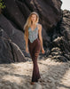 Flare Yoga Pants For Women In Brown with Floral Cutouts (Lycra Fabric)